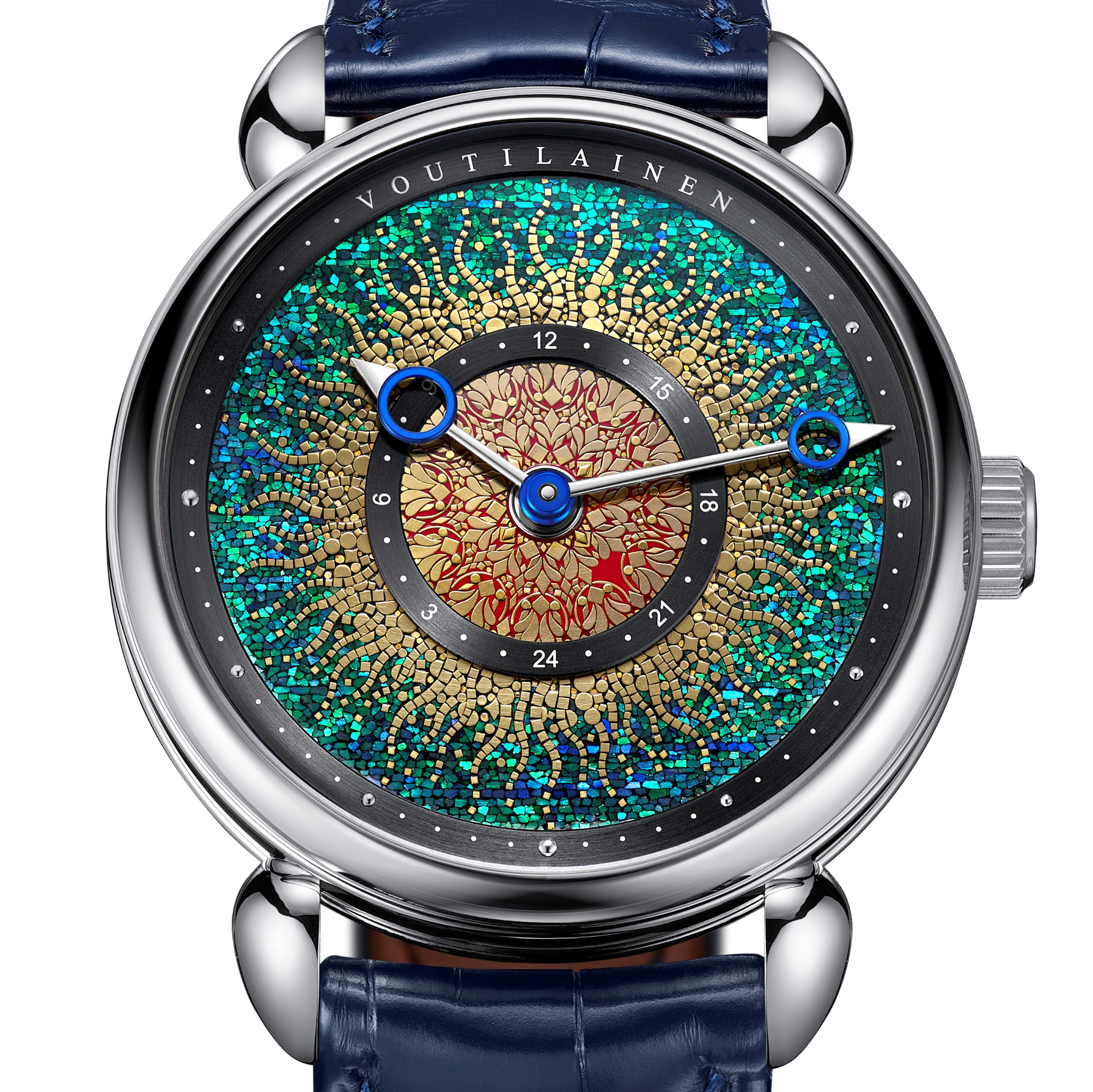 Voutilainen 28GML SOUYOU, 2025. Platinum Case size is ø 39 mm, thickness is 11.20 mm, water resistant to 30 m, and sapphire crystal (front and back). Calibre 28GML, manual-winding mechanical; it runs at 18,000 vph and displays hours and minutes with a central second time zone via a 24-hour rotating disc, and the power reserve is 65 hours. Limited to a 1-piece limited series. Priced at CHF 290,000 (incl. VAT). This watch is the winner of the 2025 Grand Prix d’Horlogerie de Genève Artistic Crafts Watch Prize.